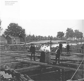 Bouw Spoorbrug over de Ringvaart HESM. ca. 1911.