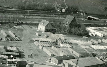 Op de foto staat spoorhuis nr 10 bij de Vinkebrug en een stuk terrein van Van Baarsen. 1949.