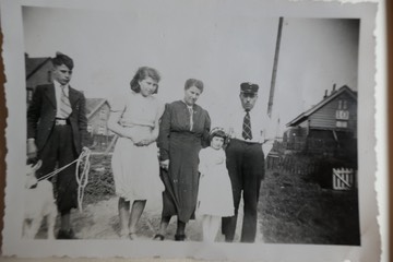 "Op de 1ste foto staat mijn opa en oma, mijn moeder, haar broer en zusje. " - Lucy Garthoff. (Mientjes). Op de achtergrond spoorhuis 10. Links achter de bebouwing van Vinkebrug.