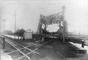 Iets ten oosten van de Hoofdwerkplaats Haarlem van de HSM takte de in 1912 geopende spoorlijn naar Hoofddorp met een boog in zuidoostelijke richting af. De trekvaart richting Amsterdam werd door middel van de zichtbare hefbrug gekruist.